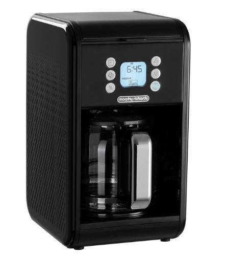 The Morphy Richards Filtered Coffee Maker features a spacious 12-cup (1.8L) glass carafe with a convenient lid, allowing you to brew a generous amount of coffee for multiple servings. The permanent reusable cupcake-shaped filter eliminates the need for paper filters, providing an eco-friendly and cost-effective solution.